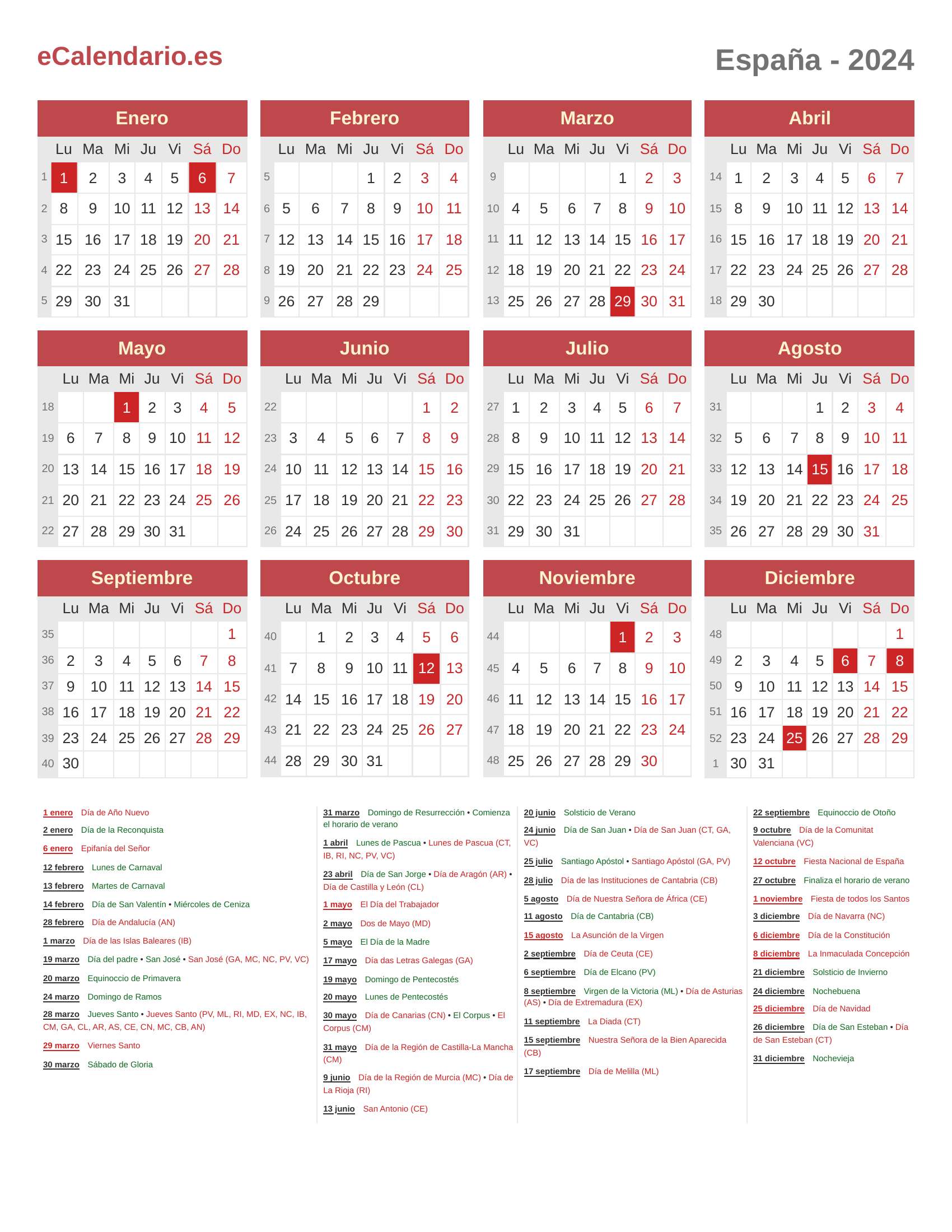Calendario 2024 - España