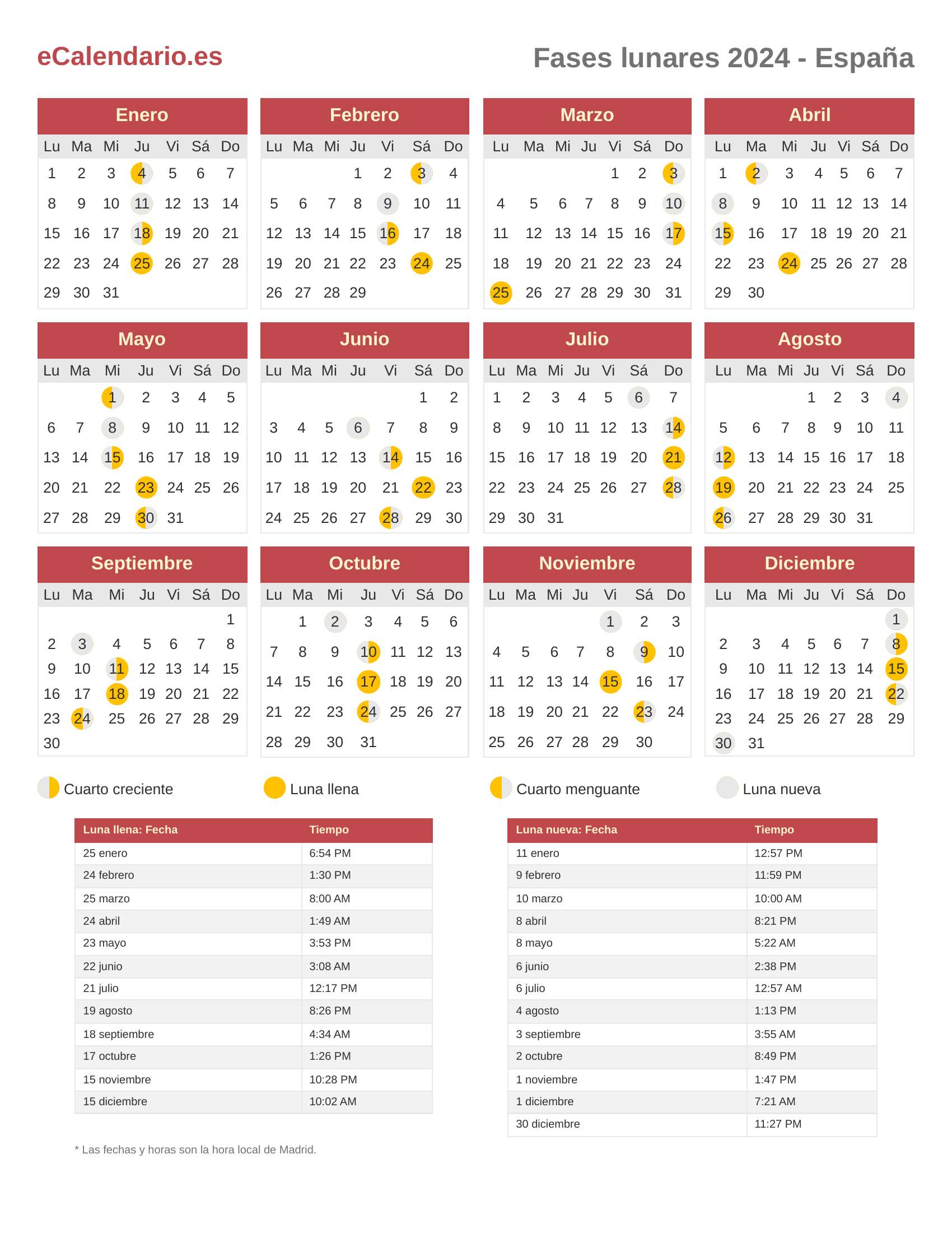 Fases lunares 2024 - España