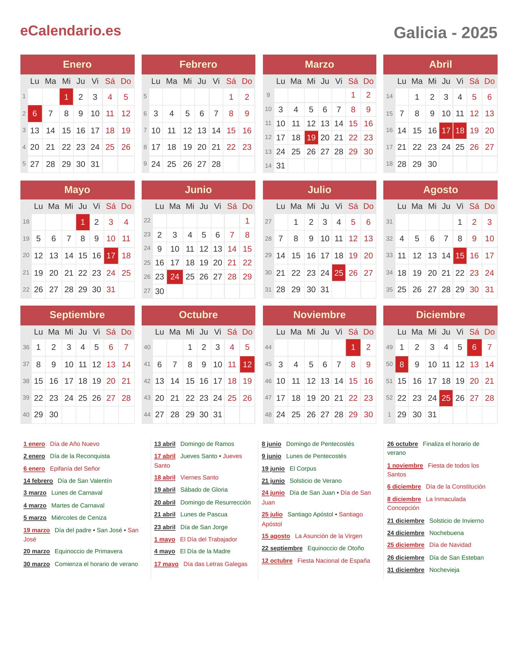Calendario 2025 - Galicia
