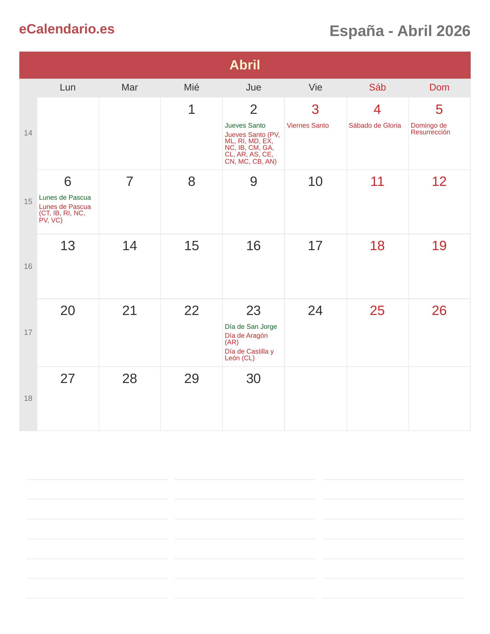 Jueves Santo Jueves Santo (CYL, AS, EX, GA, MD, CE, AN, CLM, RI, PV, AR, IB, NC, CN, CB, MC, ML) |