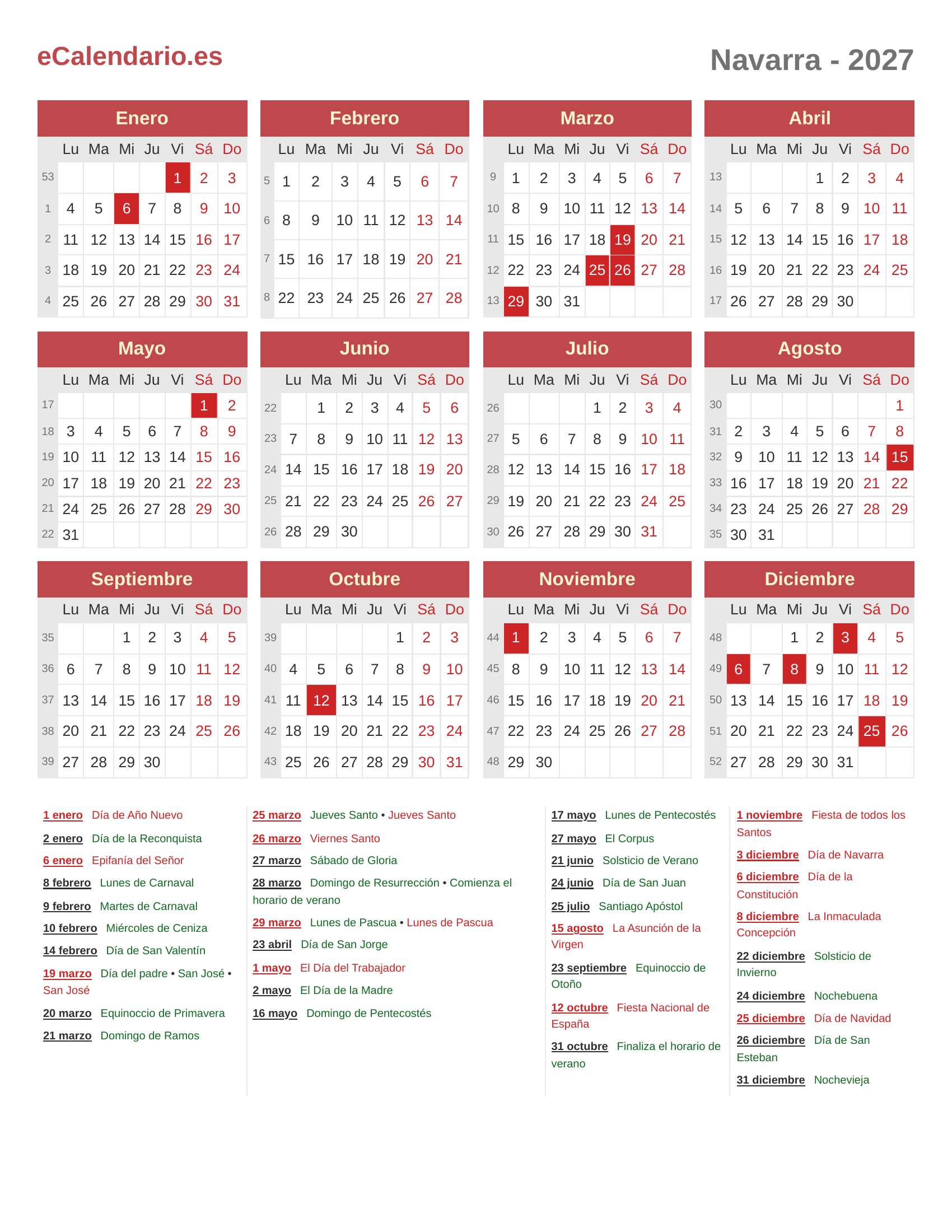 Calendario 2027 - Navarra